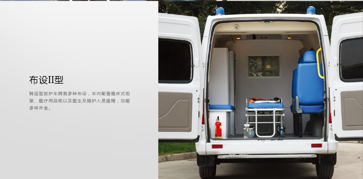 轉(zhuǎn)運(yùn)型救護(hù)車應(yīng)急轉(zhuǎn)運(yùn)快捷,并在轉(zhuǎn)運(yùn)途中提供簡(jiǎn)單的醫(yī)療救治,高效轉(zhuǎn)運(yùn)病人。